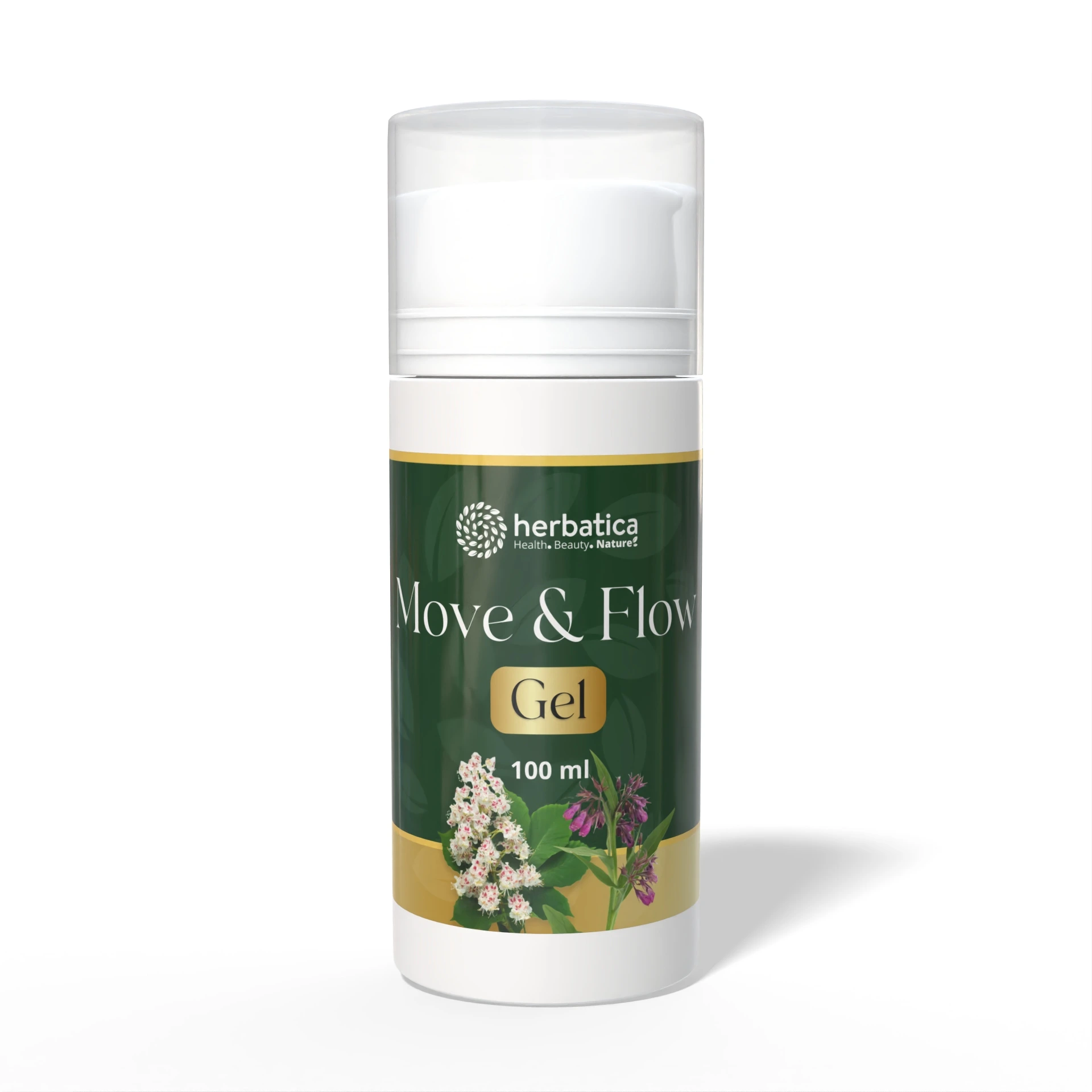 Move & Flow Gel je tělový gel navržený pro péči o pokožku při pocitu únavy svalů, otocích nebo nepříjemných pocitech v nohách. Receptura je založena na kombinaci rostlinných extraktů z kostivalu lékařského a kaštanu koňského, které se v kosmetice tradičně využívají při péči o pokožku vystavenou fyzické zátěži.