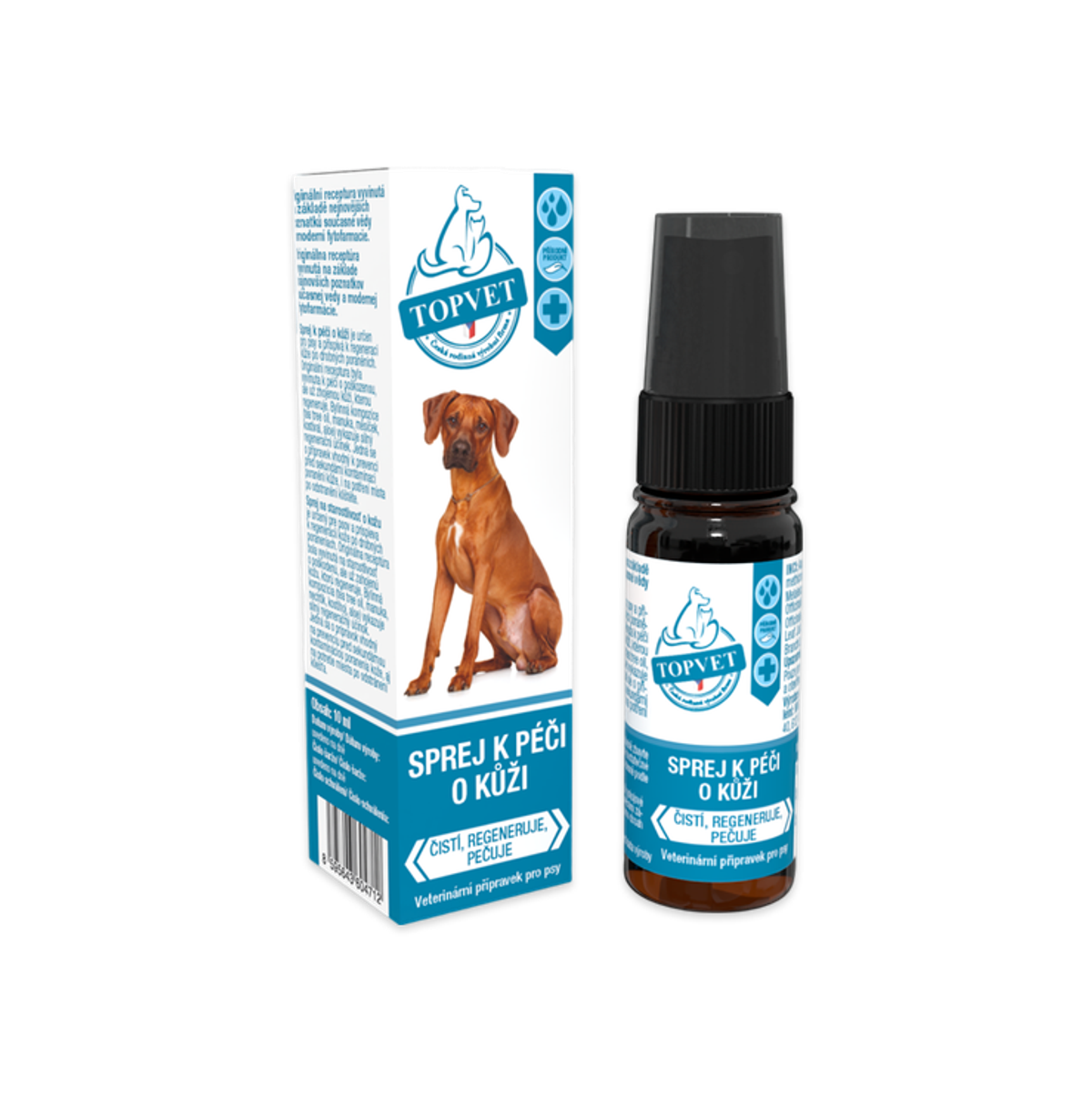 Sprej k péči o kůži je určen pro psy a přispívá k regeneraci kůže po drobných poraněních. Originální receptura byla vyvinuta k péči o poškozenou, ale už zhojenou kůži, kterou regeneruje. Bylinná kompozice (tea tree oil, manuka, měsíček, kostival, aloe) vykazuje silný regenerační účinek. Jedná se o přípravek vhodný k prevenci před sekundární kontaminací poranění kůže, i na potření místa po odstranění klíštěte.