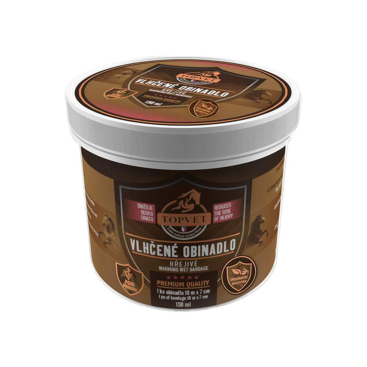 Bylinná kompozice s vysokým obsahem rostlinných extraktů a silic je napuštěna do pružného obinadla. Doporučujeme použít před náročným fyzickým výkonem jako prevenci před poškozením kloubů, svalů a vazů. Těchto vlastností je vhodné využít u sportovních, pracovních i rekreačních koní.