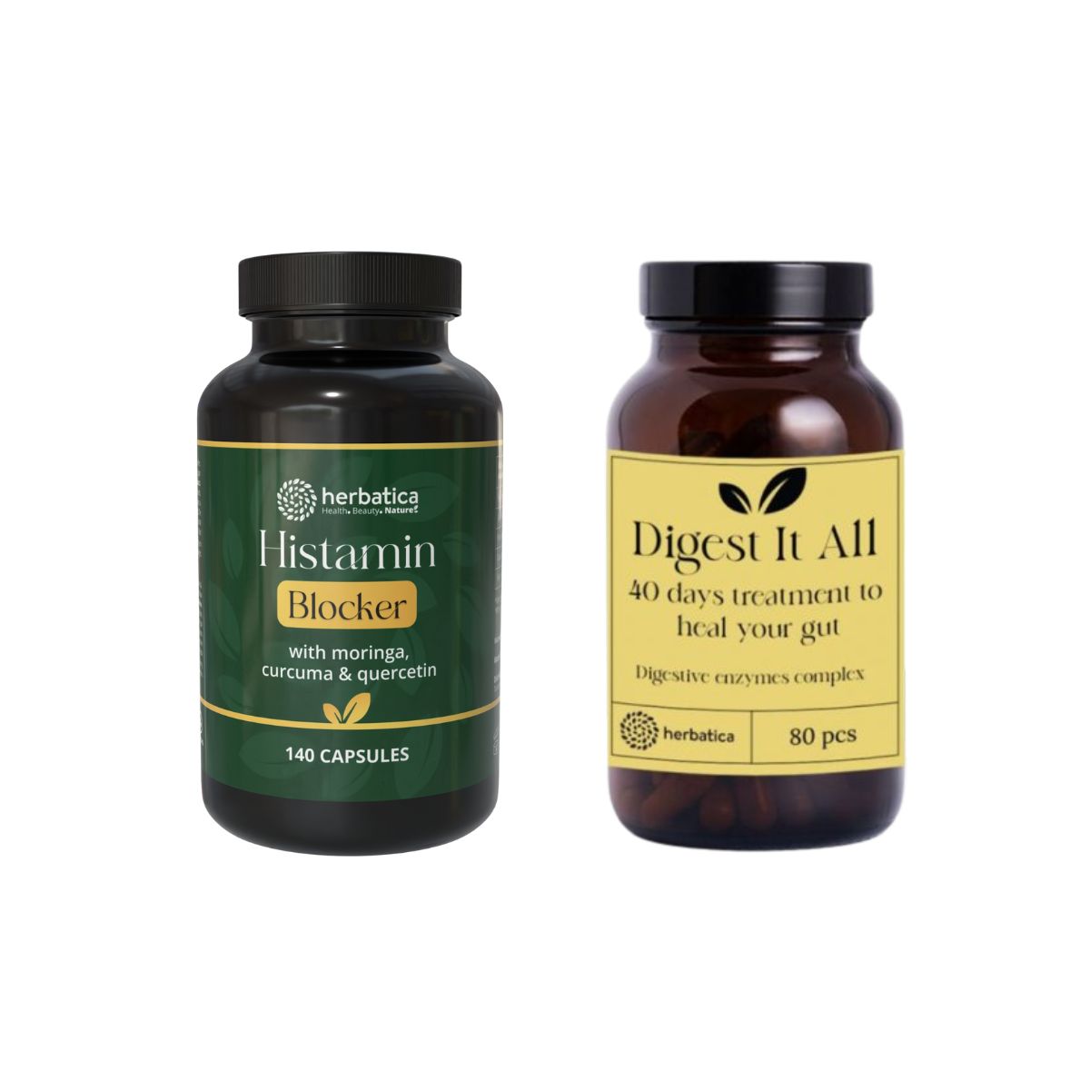 Máte potíže s trávením nebo vás trápí histaminová intolerance? Chtěli byste si užívat života bez nepříjemných příznaků, jako jsou bolesti hlavy, kožní vyrážka, nafouknutí nebo únava? Právě pro vás jsme připravili tento náš cenově zvýhodněný set: Silné kombo pro boj s histaminovou intolerancí.